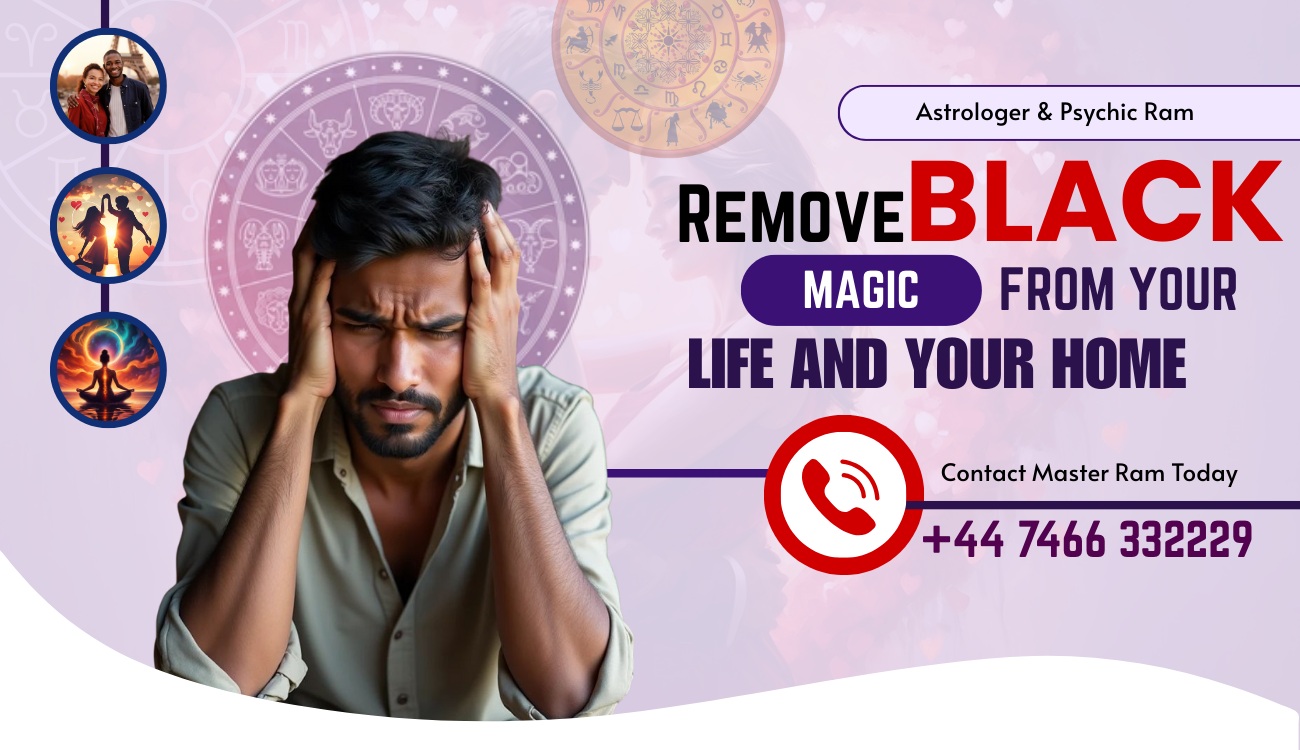 Black Magic Removal helps eliminate negative energies, evil eye effects, and psychic disturbances affecting life and peace. With powerful remedies and spiritual protection, Astrologer Ram restores positivity, balance, and mental strength